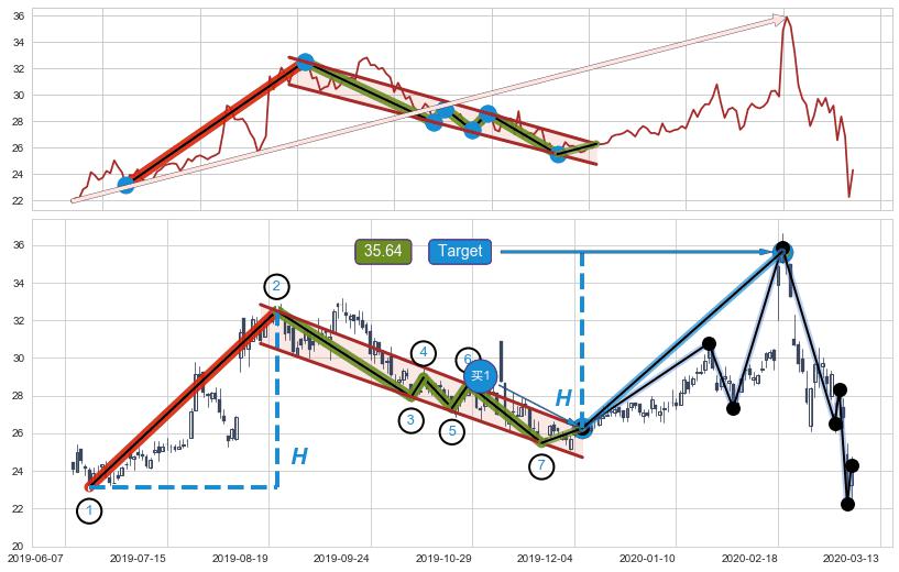 ➣ 最小中继整理涨幅→𝐇: 9.37 (𝐇旗杆的长度:旗杆起点→顶点)