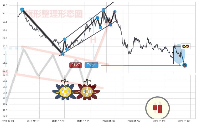 ➢ 【已确认突破】最后价格:27.83与最小【整理】第一目标价格→(2020-04-03: 24.27 )相较: 下跌空间【较小】