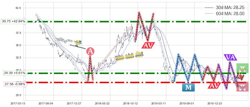 ♘ 阻力价格位29.39,可信任强度85.23%,距离最后交易2020-03-13形成的收盘价格27.83相差 +5.61%