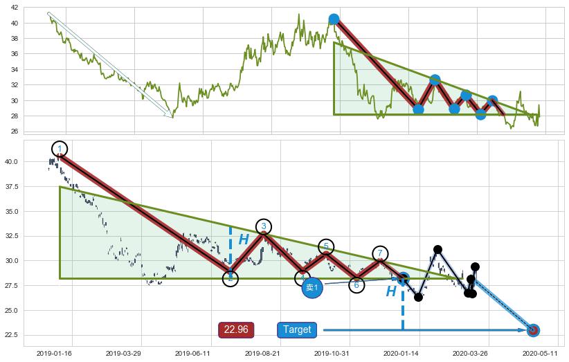 ➢ 【已确认突破】最后价格:27.83与最小【整理】第一目标价格→(2020-05-11: 22.96 )相较: 下跌空间【较大】