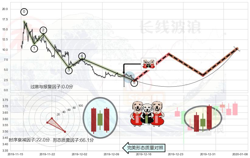 ➢ 🕰 价格走势在2020-01-02至2020-01-08期间形成低档五阳线,残存影响值:0.55