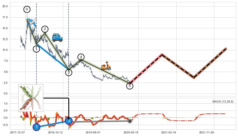 ➢ 上涨螺旋桨形态 + 波浪理论下跌浪:浪5反弹拐点信号叠加后【信号初始稳固度】极低,【看多】信号叠加【可信度影响极小】