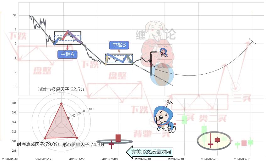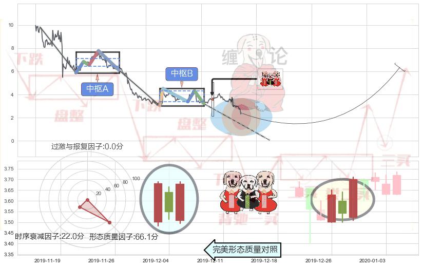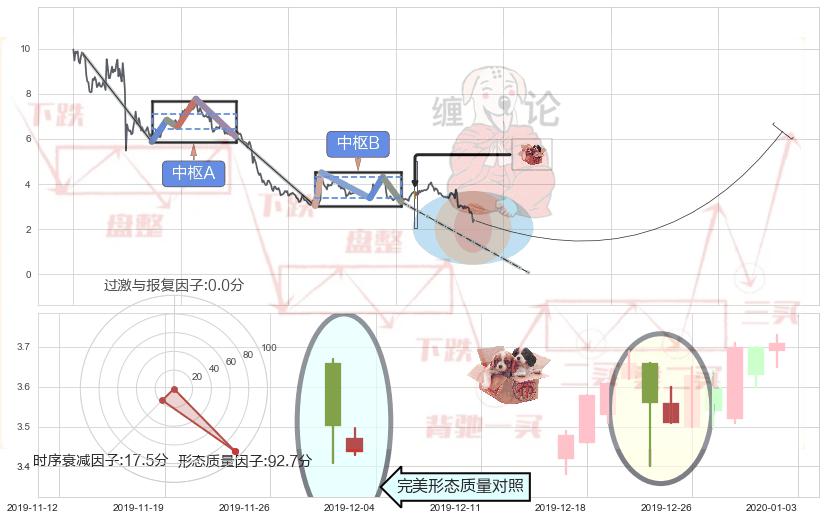 ➣ 上涨螺旋桨形态 + 缠论中枢点下降缠临近1买反弹点信号叠加后【信号初始稳固度】极低,【看多】信号叠加【可信度影响极小】
