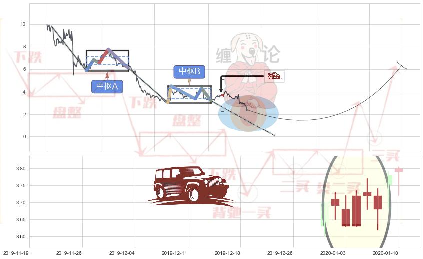 ➢ 【中枢B】:2019-08-12-2019-12-04,中枢由5笔构成,共81交易日, ZG=4.31, ZD=3.380