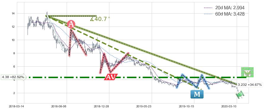 ♘ 阻力价格位4.38,可信任强度87.00%,距离最后交易2020-03-13形成的收盘价格2.400相差 +82.52%