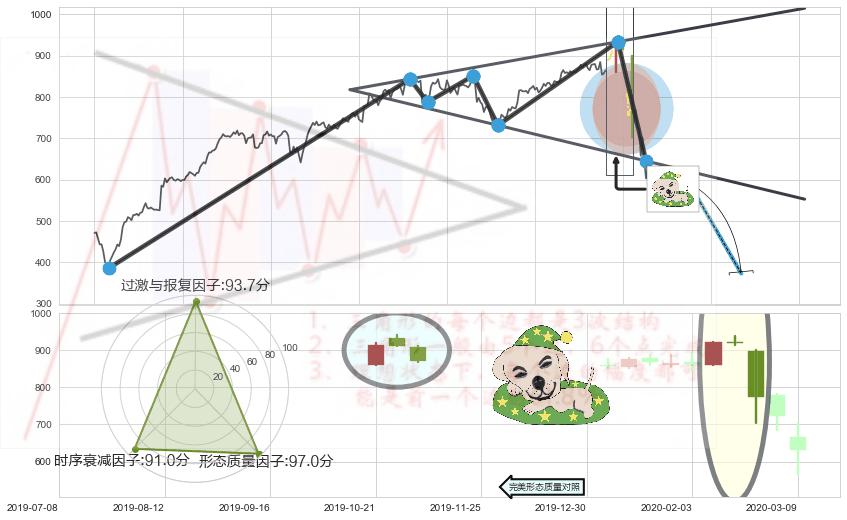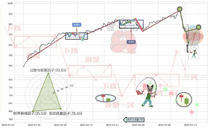 ➢ 🕰 价格走势在2020-03-10至2020-03-11期间形成吊颈线(上吊线),残存影响值:-4.68