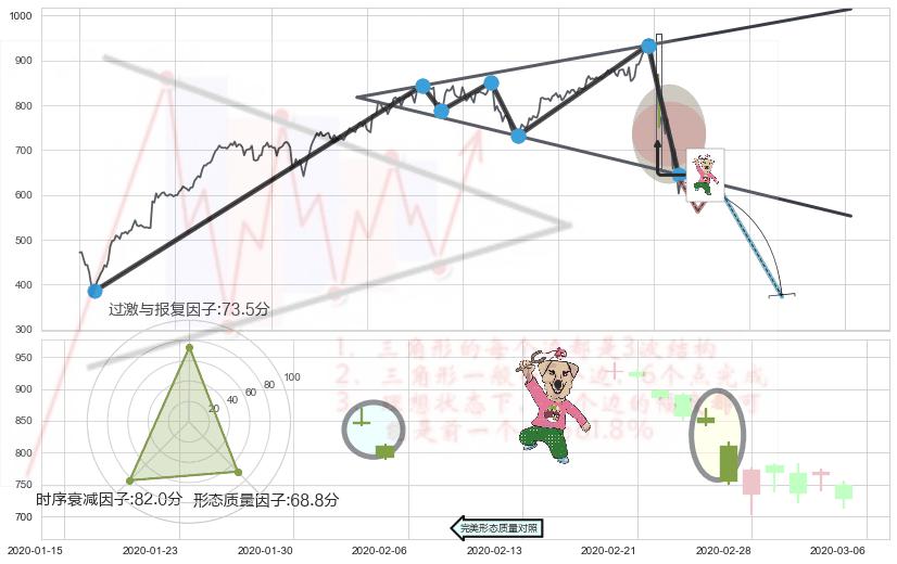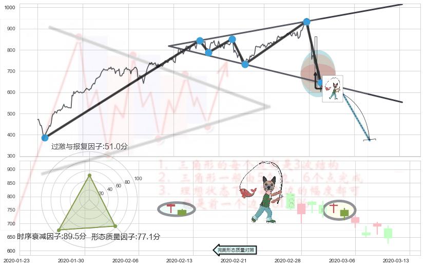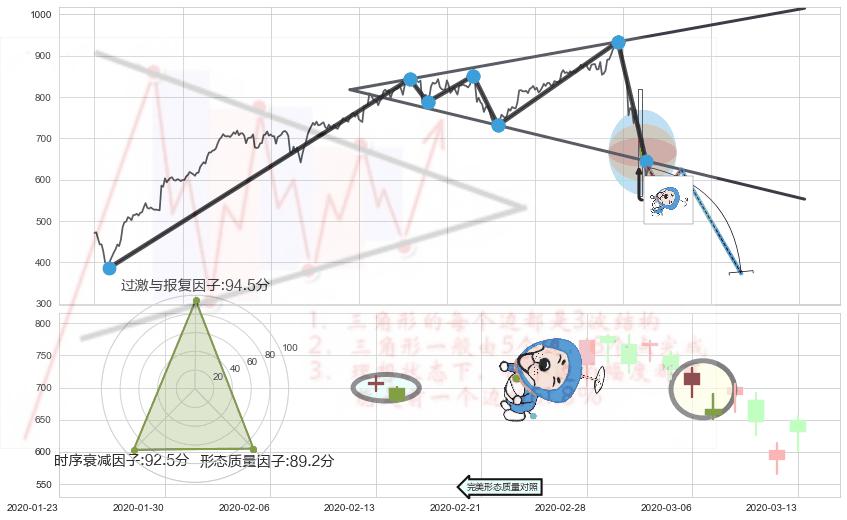 ➢ 【卖1】: 激进型 卖点→(2020-03-12: 645.36 )形成突破【扩散】三角形反转【反转】形态