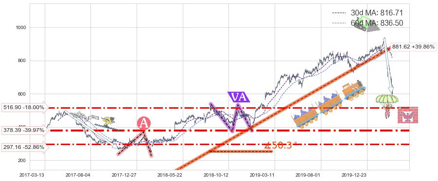 ♘ 支撑价格位378.39,可信任强度70.32%,距离最后交易2020-03-13形成的收盘价格630.36相差 -39.97%