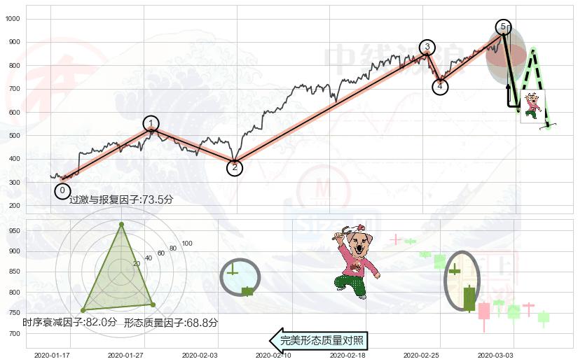 ➢ 🕰 价格走势在2020-03-04至2020-03-05期间形成吊颈线(上吊线),残存影响值:-3.53
