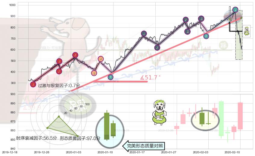 ➢ 2018-04-02-2020-03-11上升趋势存在反转[风险],其原上升趋势的支撑位(885.22)已破位[强阻力信号],原上升趋势角度: 51.7˚