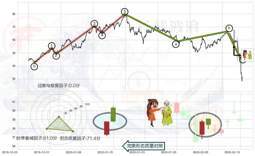 ➢ 🕰 价格走势在2020-02-14至2020-02-18期间形成底部尽头线(上山虎),残存影响值:0.75