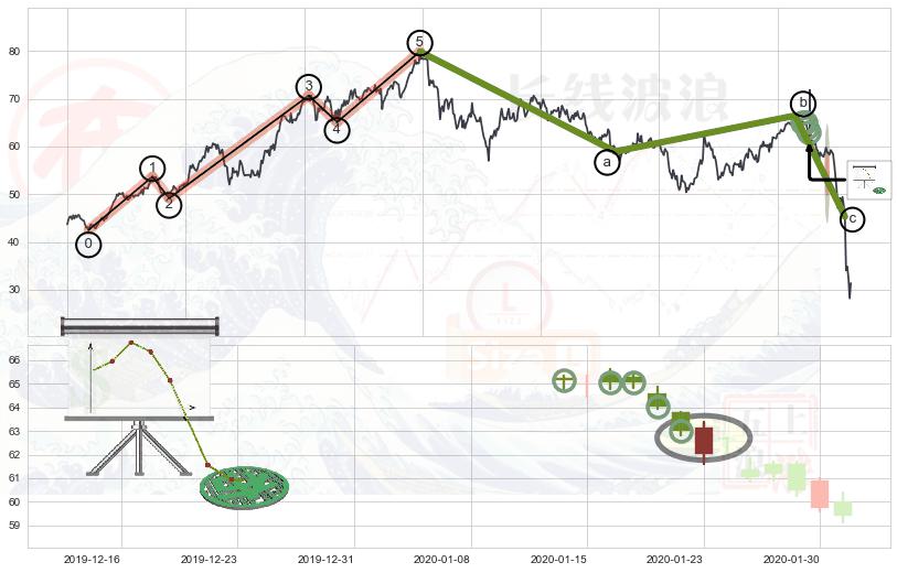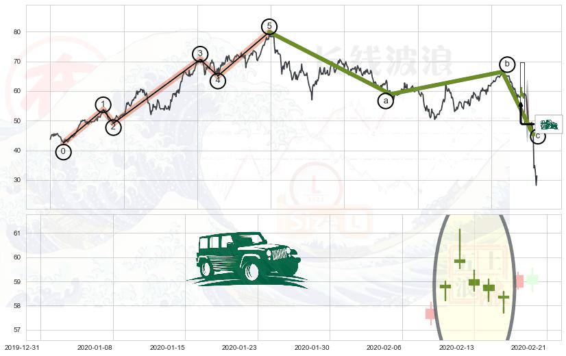 ➢ 波浪理论:猜想击穿破位c点后继续下跌 → 下跌 → 风险信号 → 小趋势跟踪