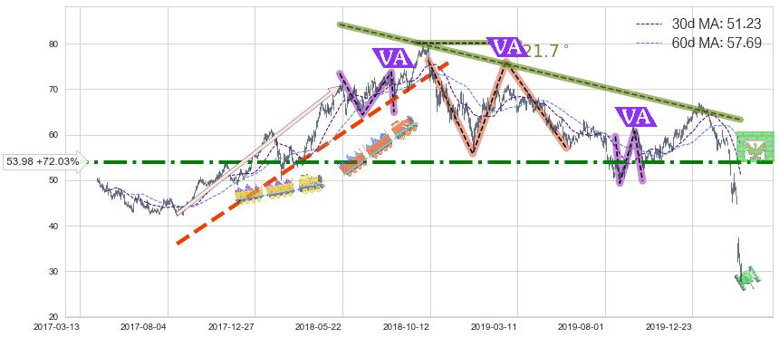 ♘ 阻力价格位53.98,可信任强度82.19%,距离最后交易2020-03-13形成的收盘价格31.38相差 +72.03%