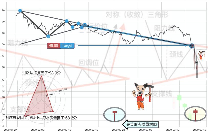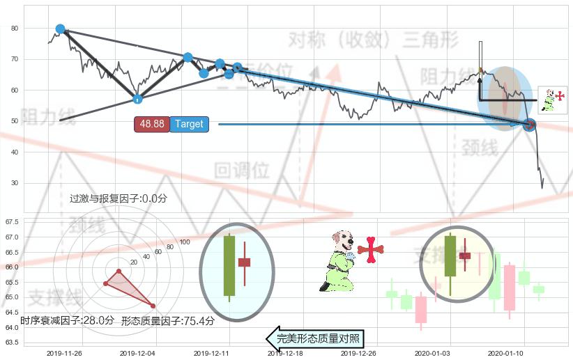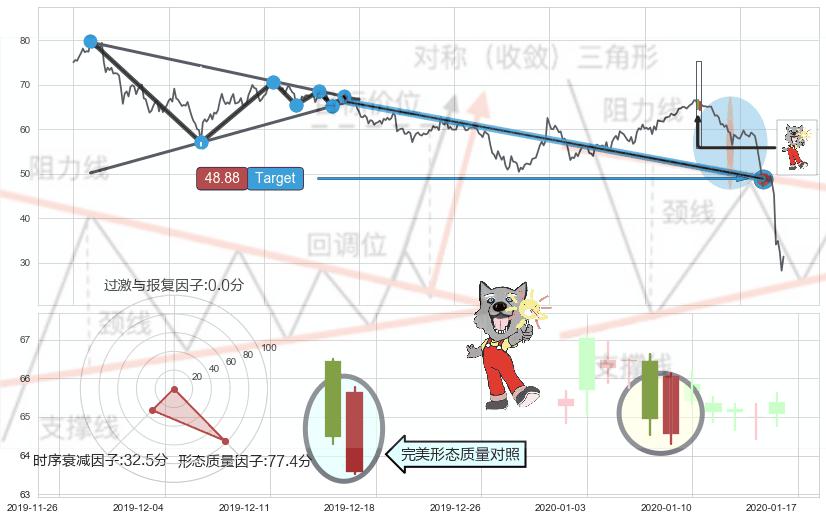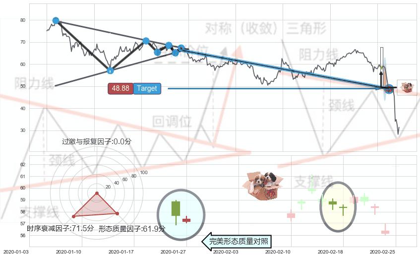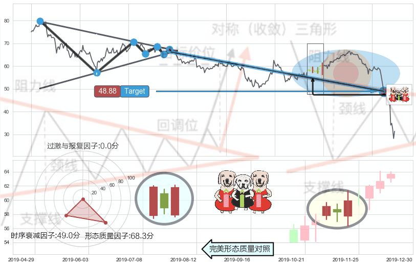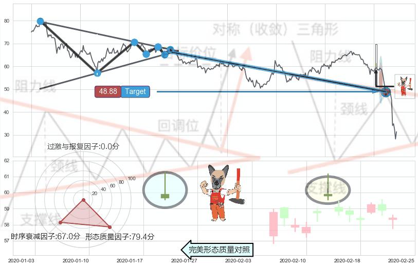 ➢ 下降【对称】三角形整理综合量化分数: 49.50 【中性】