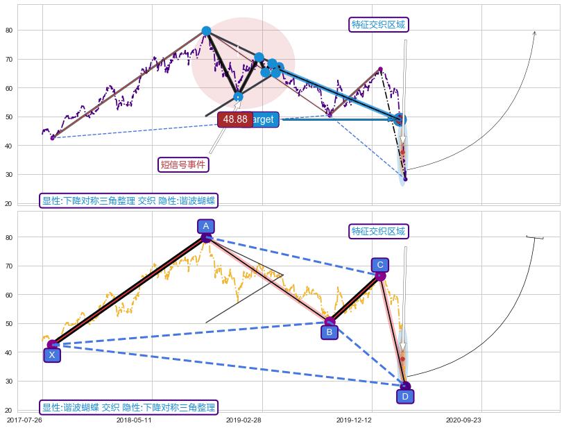 ➢ 下降对称三角整理属【短级别信号事件】谐波蝴蝶属【长级别信号事件】长短周期组合信号事件, 短长事件长度比21.12%
