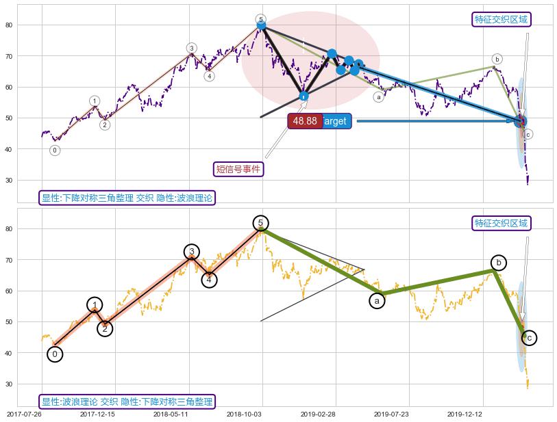 ➢ 下降对称三角整理属【短级别信号事件】波浪理论属【长级别信号事件】长短周期组合信号事件, 短长事件长度比21.25%