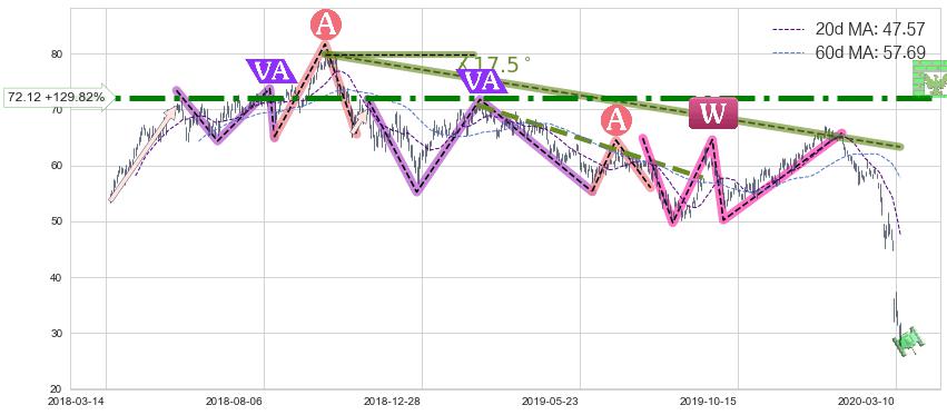 ♘ 阻力价格位72.12,可信任强度99.00%,距离最后交易2020-03-13形成的收盘价格31.38相差 +129.82%