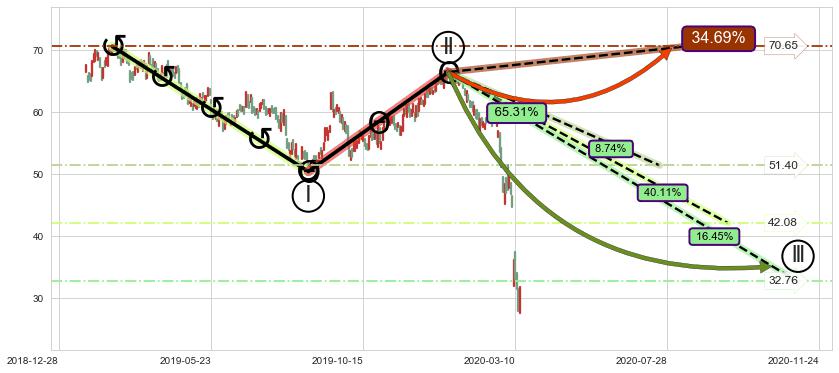 ➣ 调整浪已超过预测的c点位置,后续大趋势循环浪继续下跌概率65.31%,谨慎做多