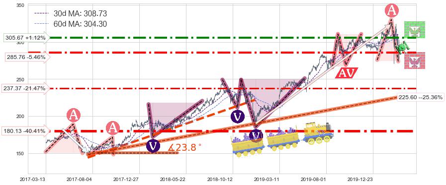 ♘ 阻力价格位305.67,可信任强度74.96%,距离最后交易2020-03-13形成的收盘价格302.27相差 +1.12%