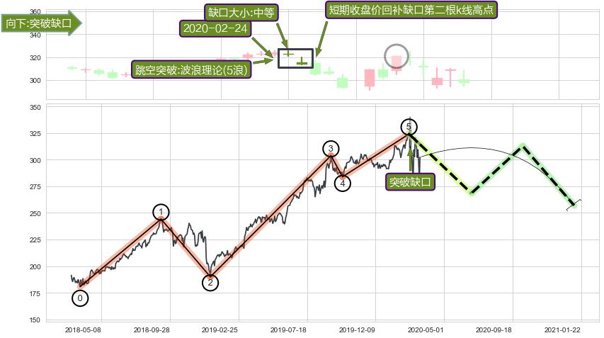 ➢ 收盘价(2020-03-04: 320.74 )→回踩→第二根k线高点(2020-02-24: 320.00 )