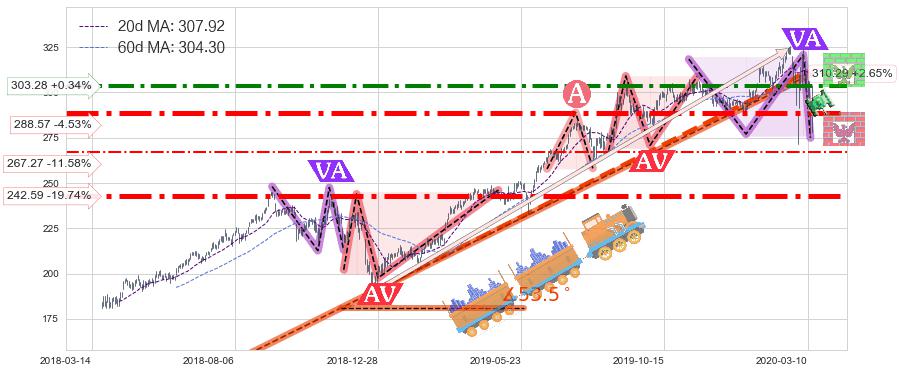 ♘ 阻力价格位303.28,可信任强度72.97%,距离最后交易2020-03-13形成的收盘价格302.27相差 +0.34%
