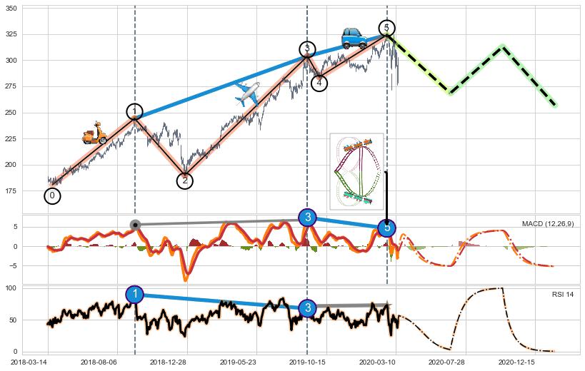 ➢ 波浪理论:猜想止涨 → 下跌 →【拐点】浪5已完成 → 大趋势均值回复