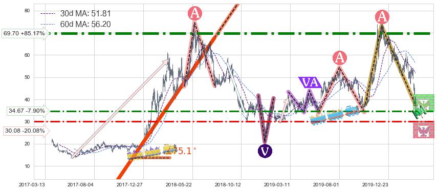 ♘ 阻力价格位34.67,可信任强度55.42%,距离最后交易2020-03-13形成的收盘价格37.64相差 -7.90%