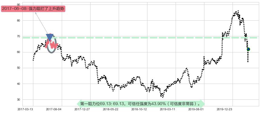 ♘ 阻力价格位69.13,可信任强度43.90%,距离最后交易2020-03-13形成的收盘价格61.90相差 +11.69%