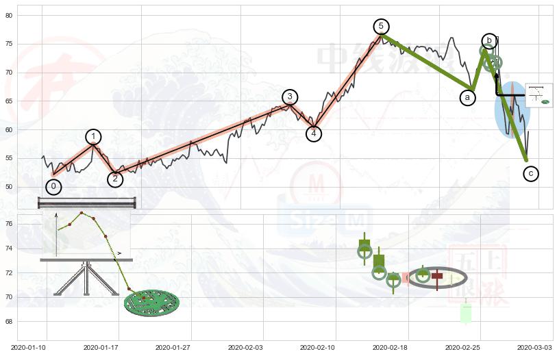 ➢ 波浪理论:猜想击穿破位c点后继续下跌 → 下跌 → 风险信号 → 小趋势跟踪