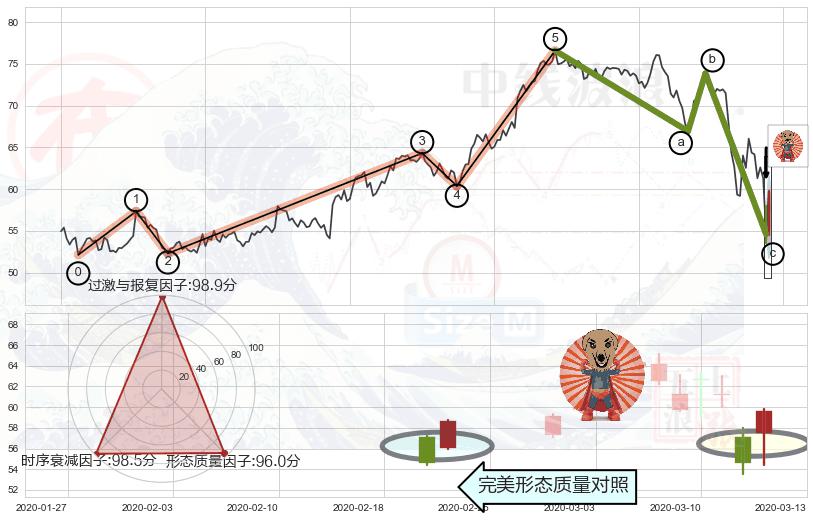 ➢ 🕰 价格走势在2020-02-14至2020-02-14期间形成单针探底(定海神针),残存影响值:2.87