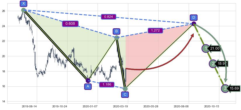 ➣ D点拟合预测价格24.29,距离最后交易收盘价格18.35相差 +32.36%