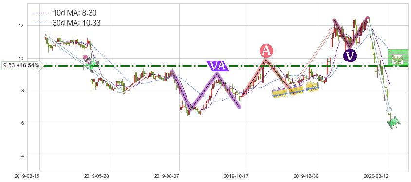 ♘ 阻力价格位9.53,可信任强度68.20%,距离最后交易2020-03-13形成的收盘价格6.50相差 +46.54%
