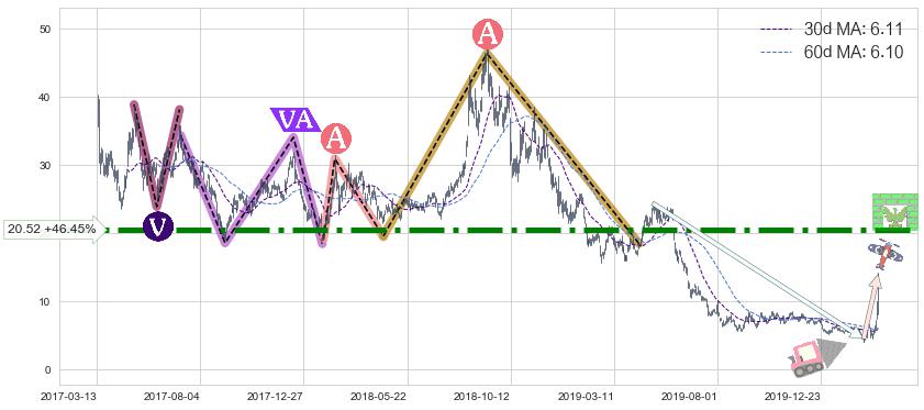 ♘ 阻力价格位20.52,可信任强度90.26%,距离最后交易2020-03-13形成的收盘价格14.01相差 +46.45%