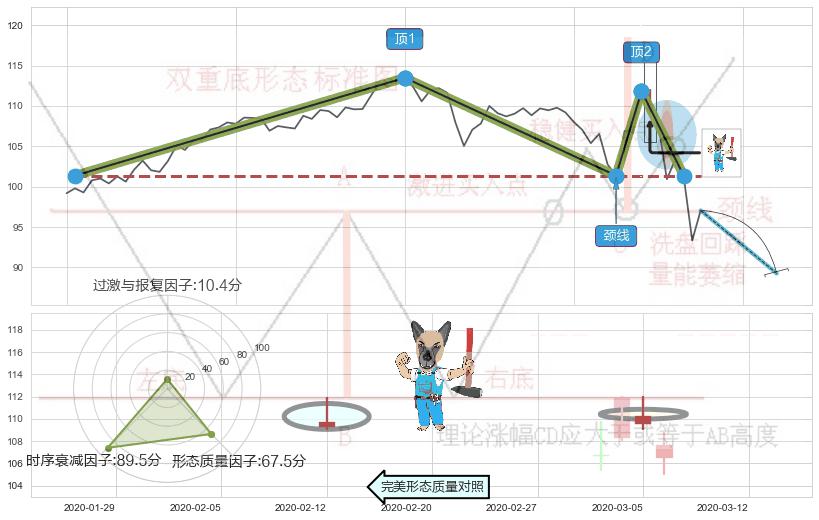 ➢ 【卖1】: 激进型 卖点→(2020-03-11: 101.37 )形成突破双重顶【反转】形态