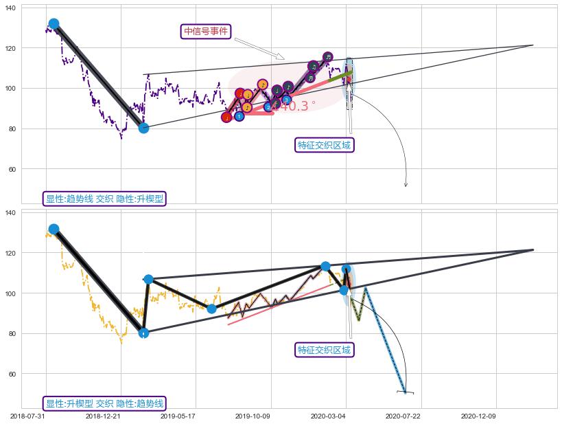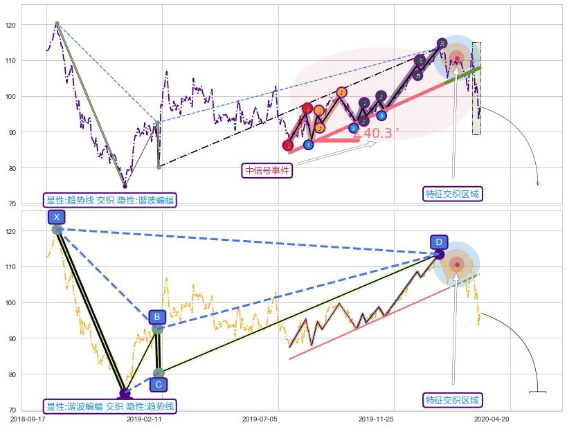 ➢ 趋势线属【中级别信号事件】升楔型属【长级别信号事件】中长周期组合信号事件,中长事件长度比40.40%