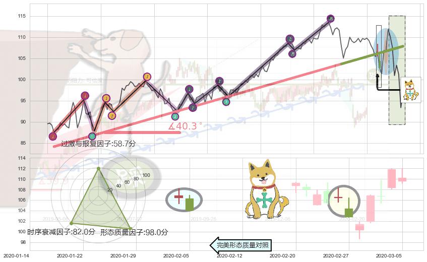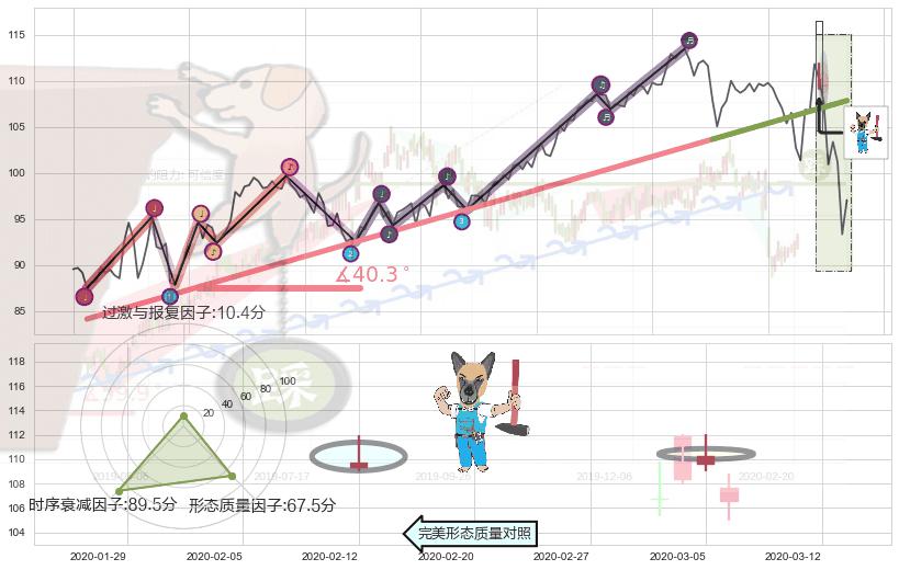 ➢ 🕰 价格走势在2020-03-11至2020-03-12期间形成吊颈线(上吊线),残存影响值:-4.69