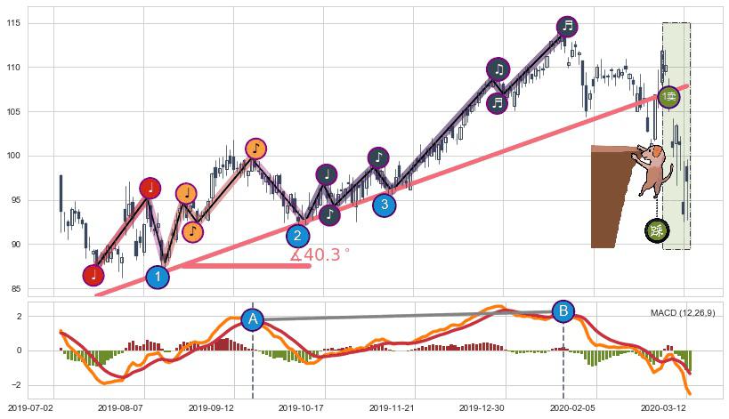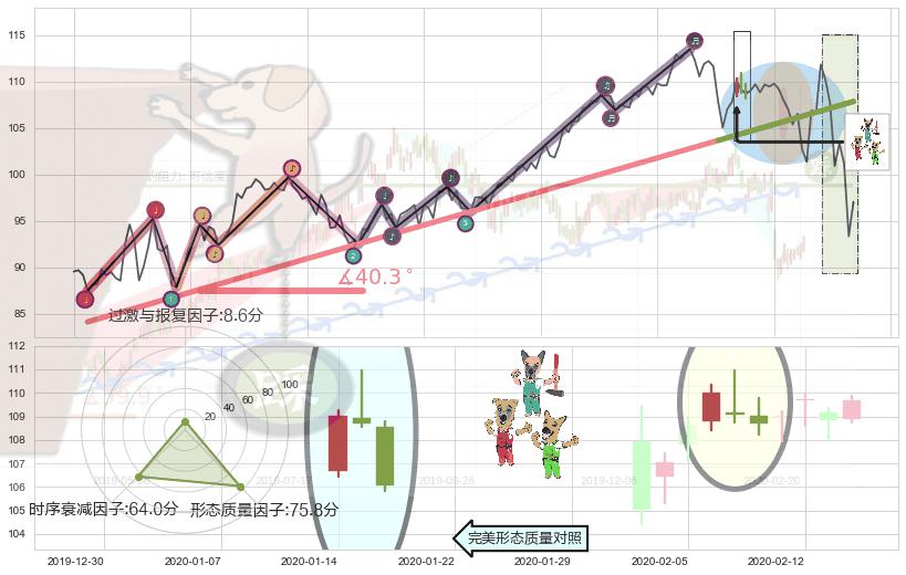 从2019-10-10至2020-01-31,共包含78个交易日,阶段股价上涨15.88%,阶段股价变动位移路程比: 1 : 4,上涨趋势角度: 59.4
