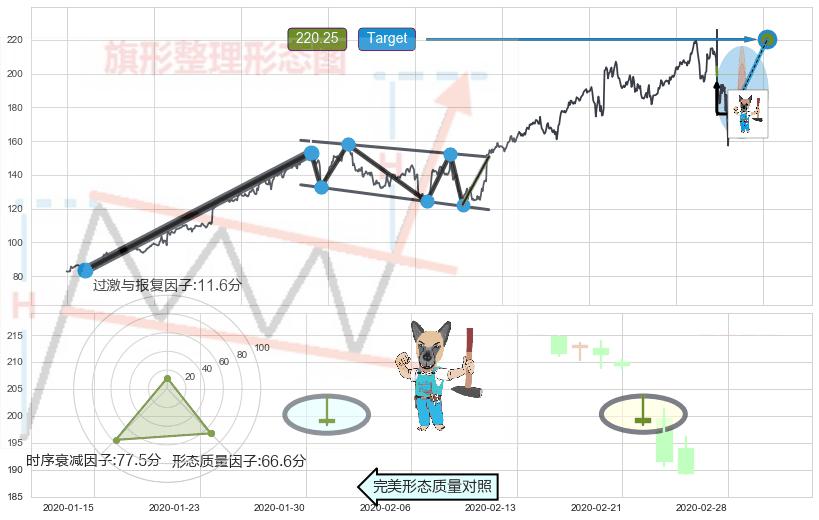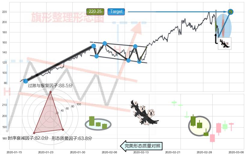 ➢ 看跌(高位倒锤头)流星线 🔜 降旗形临近target阻力拐点下跌 综合量化分数:47.06 【中性】