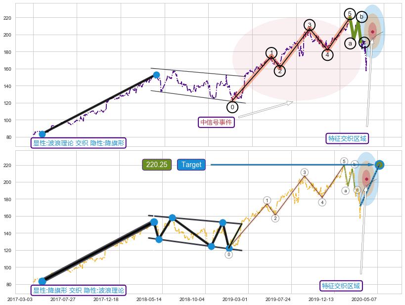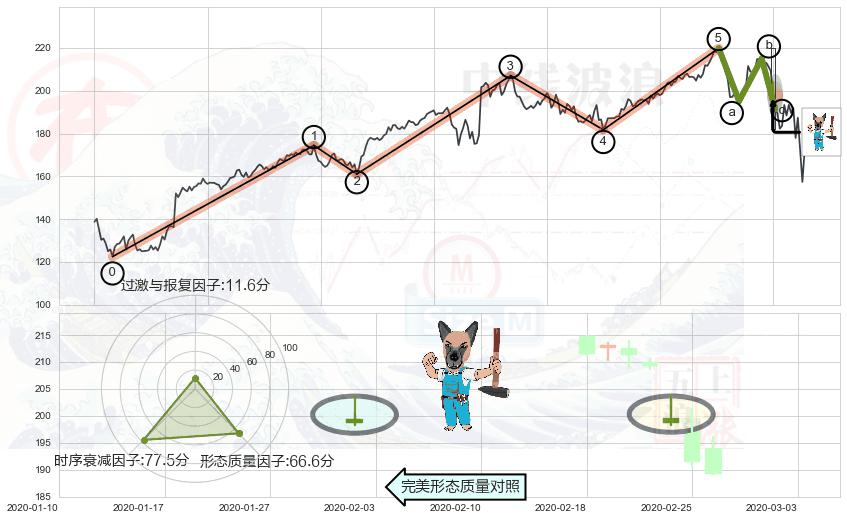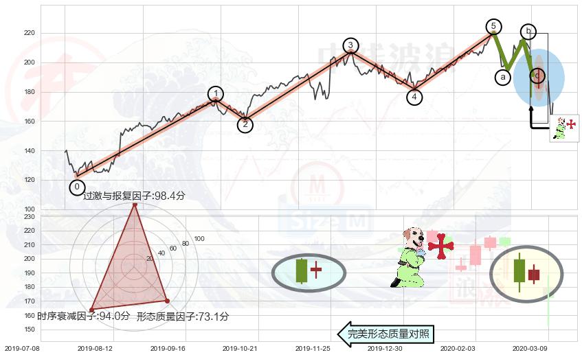 ➣ 看跌(高位倒锤头)流星线 + 波浪理论击穿破位C点继续下跌信号叠加后【目标达成率】中等,【看空】信号叠加【存续影响中等】