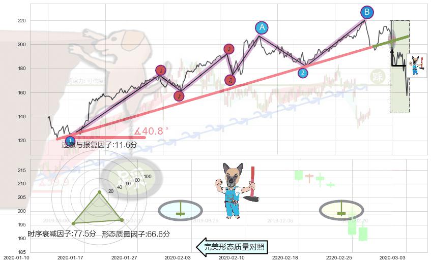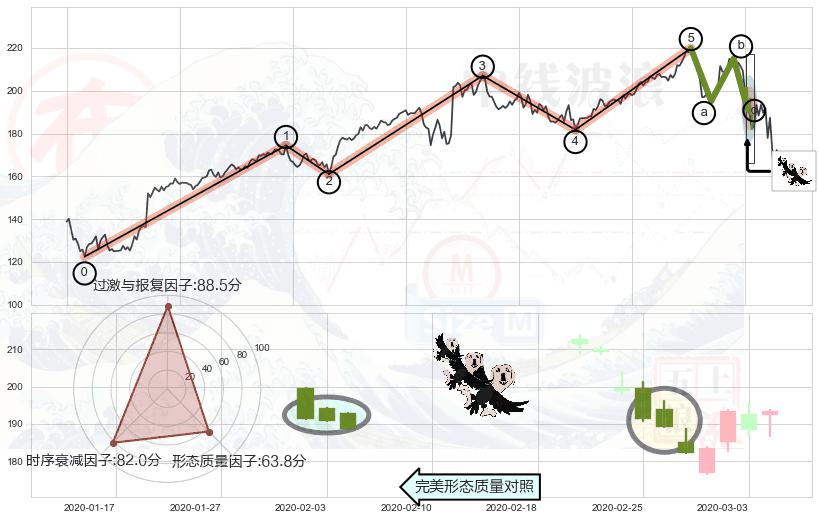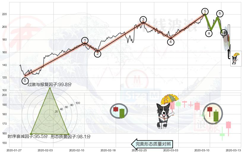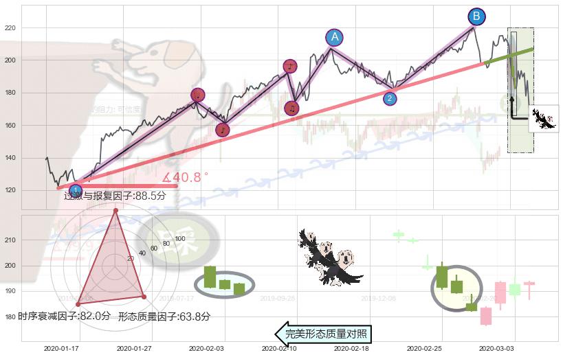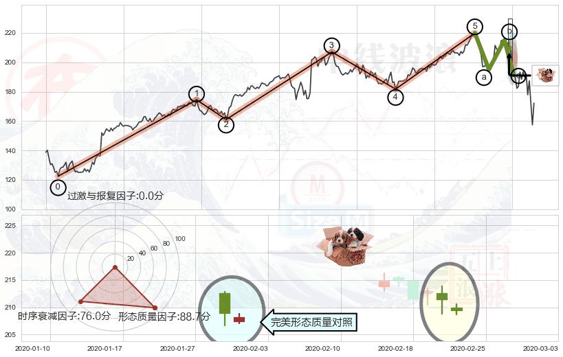 从2020-02-14至2020-03-13,共包含20个交易日,阶段股价下跌-20.07%,阶段股价变动位移路程比: 1 : 3