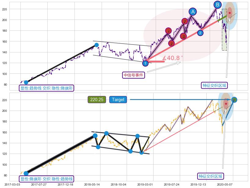 ➣ 降旗形:猜想上涨target达成后 → 下跌 → 风险信号 → 大趋势均值回复