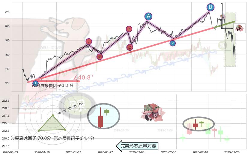 ➢ 🕰 价格走势在2020-02-13至2020-02-14期间形成顶部尽头线(下山虎),残存影响值:-2.61
