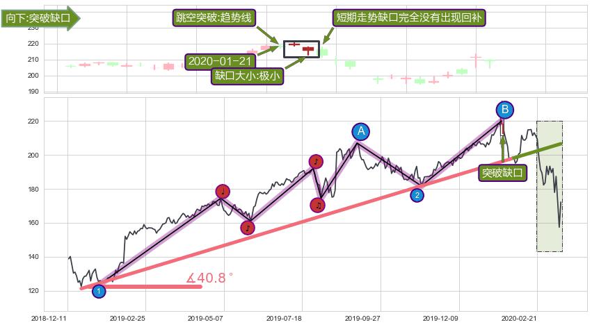 ➢ 2020-01-21形成:向下跳空【突破】缺口