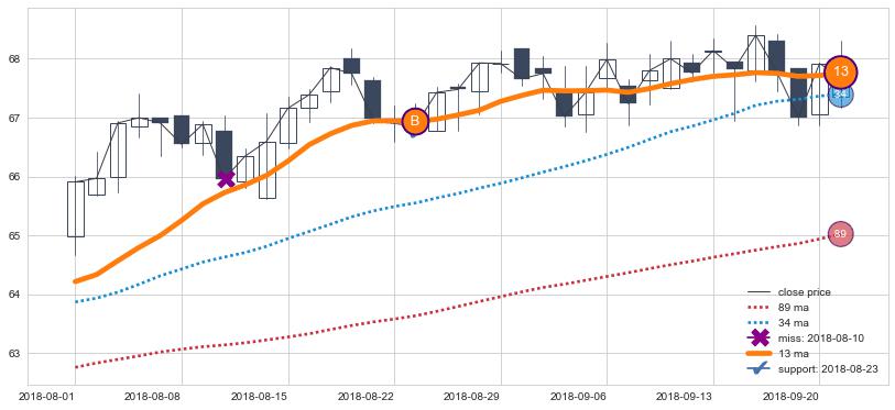 ➢ 最优均线组合共正确确认支撑阻力信号9处,正确确认率 75.00%