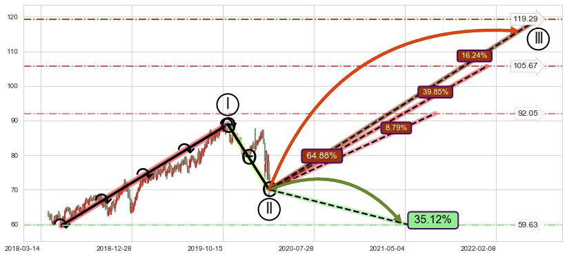 ➣ AI预测: 假定反转启动后, 第❸目标位置(2021-05-04, 88.85)