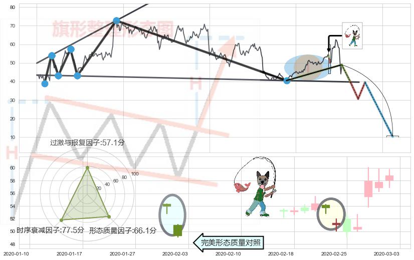 ➢ 🕰 价格走势在2020-02-21至2020-02-24期间形成吊颈线(上吊线),残存影响值:-3.39