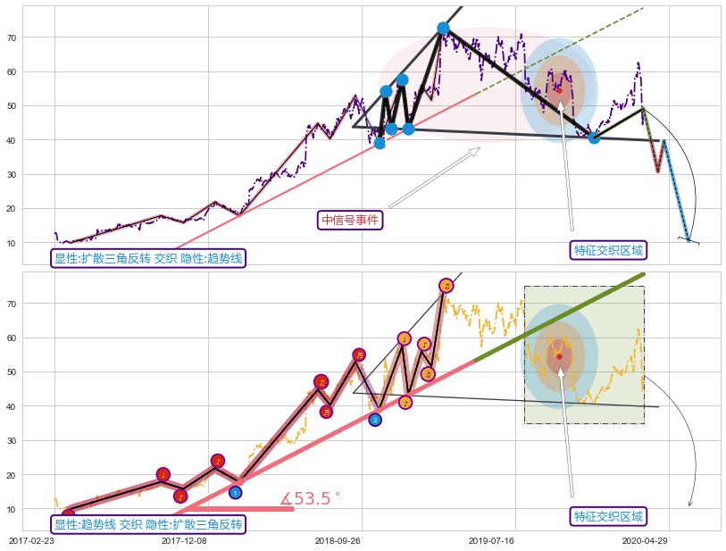 ➢ 扩散三角反转属【中级别信号事件】趋势线属【长级别信号事件】中长周期组合信号事件,中长事件长度比47.47%