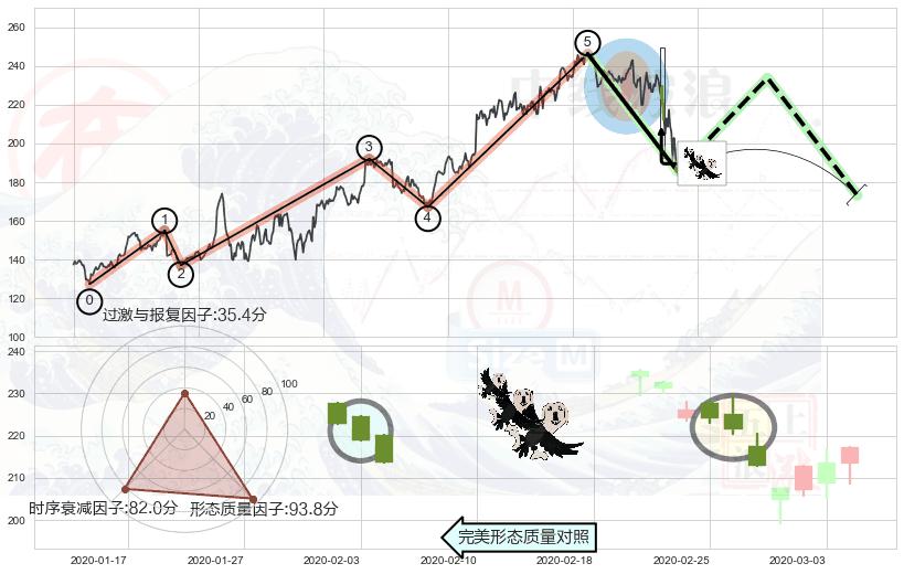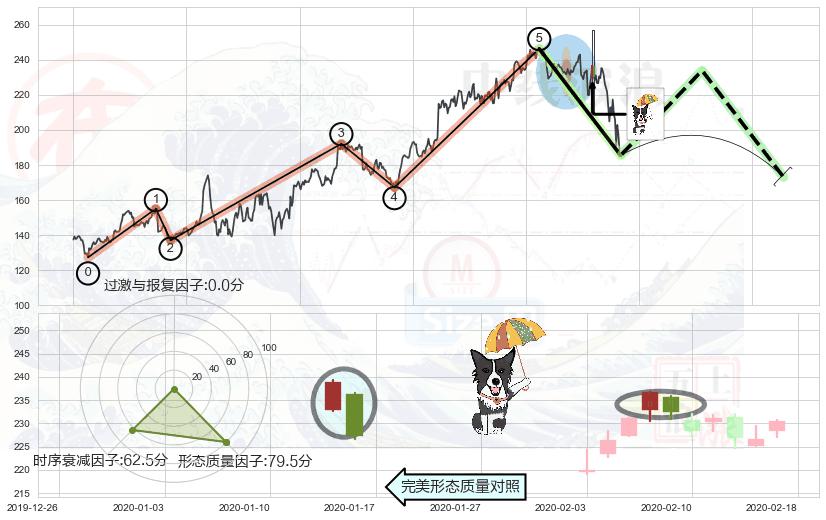 ➢ 🕰 价格走势在2020-02-25至2020-02-27期间形成三只乌鸦,残存影响值:-5.74
