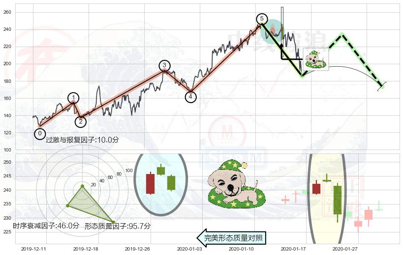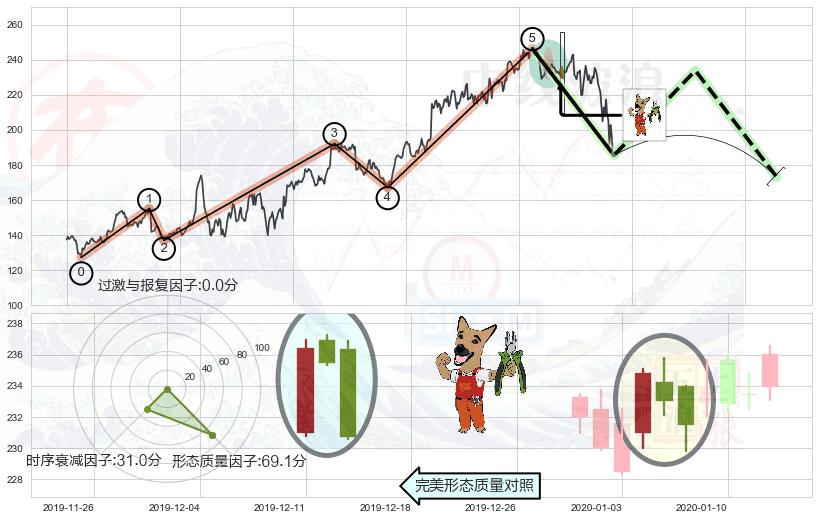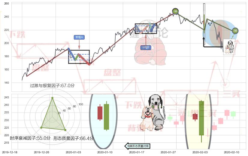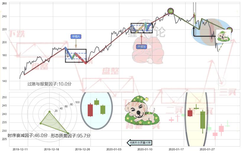 ➢ 🕰 价格走势在2020-01-08至2020-01-10期间形成两黑夹一红,残存影响值:-1.44
