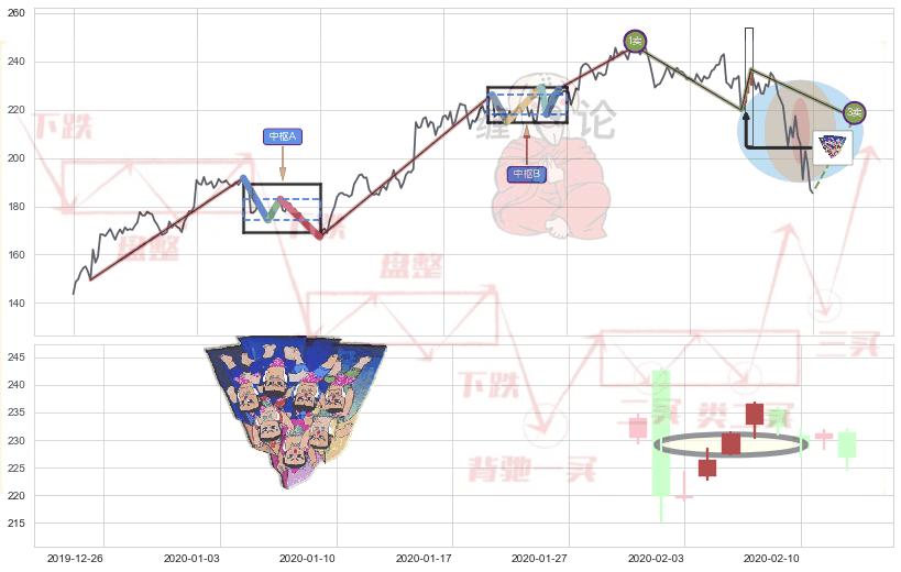 ➢ 高点影线(2020-01-31: 242.98 )→回踩→第二根k线高点(2020-01-23: 242.40 )